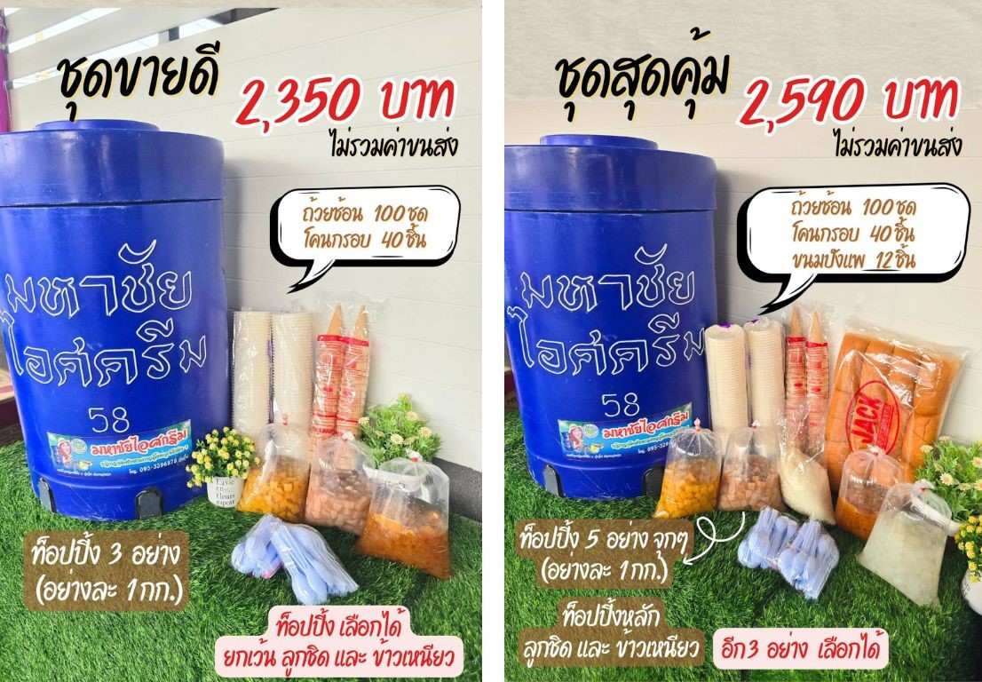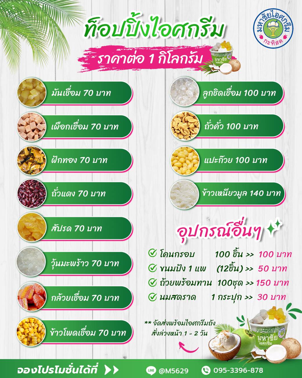 ถังละ (13 กก.) 100-120 คนทานสำหรับเลี้ยงในงาน แบบลูกค้าตักเอง สั่งเครื่อง+ท็อปปิ้งเพิ่มเติมได้